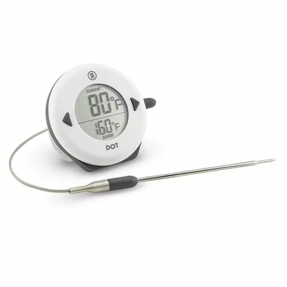 You simply can’t beat the DOT alarm thermometer for accuracy combined with simplicity. Up and down buttons set the target temp and DOT beeps when you get there. Champion BBQ teams buy these in stacks.