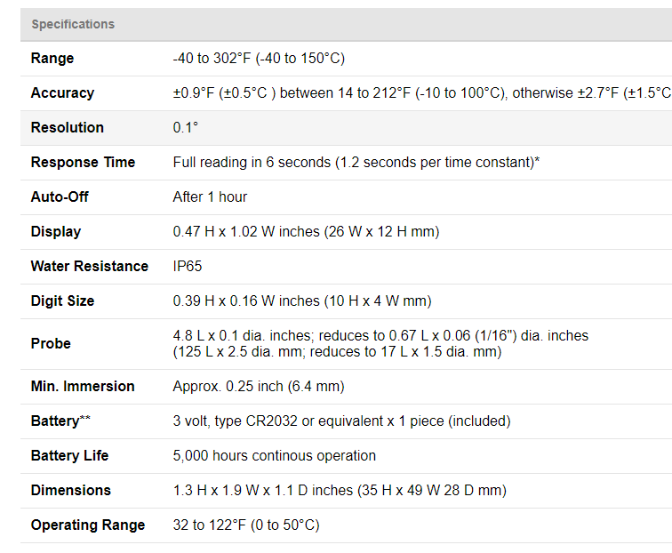 RT301WA digital pocket thermometer is top rated by a leading Cook’s Magazine. The Super-Fast ThermoWorks digital pocket thermometer reads temperatures in just 5 seconds. Big digits are easy to read, plus it fits in a shirt, apron, or chef-coat. This digital thermometer is in use at thousands of restaurants, food plants, labs, and by health inspectors world-wide. It’s the perfect digital thermometer, and the affordable choice for home or commercial use.