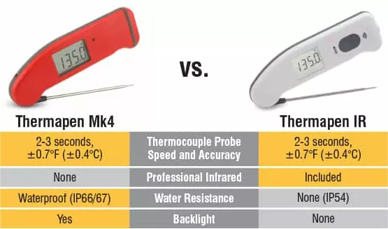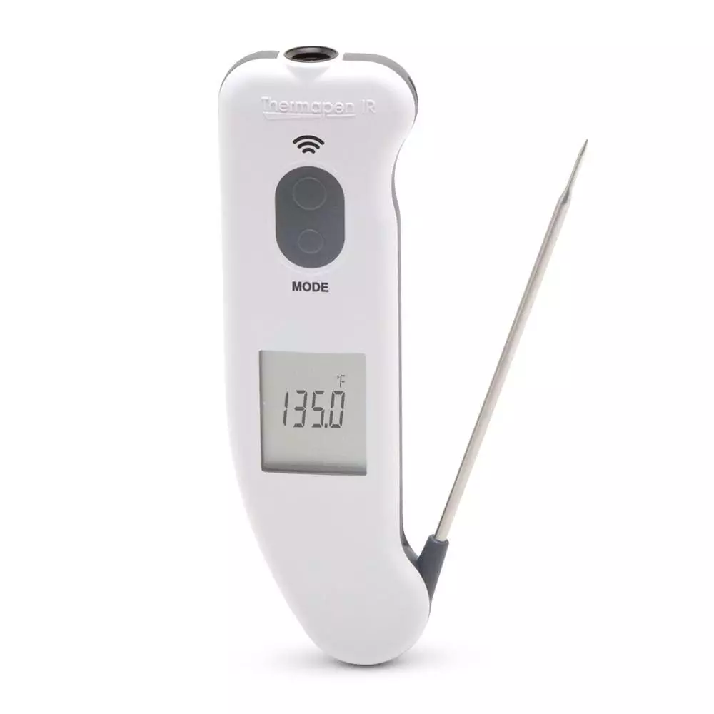 Thermapen IR combines the unparalleled speed and accuracy of the Thermapen Mk4 with the versatility of an instrument-grade infrared sensor for instant non-contact surface readings. Why carry two different thermometers when you can just carry the Thermapen IR?