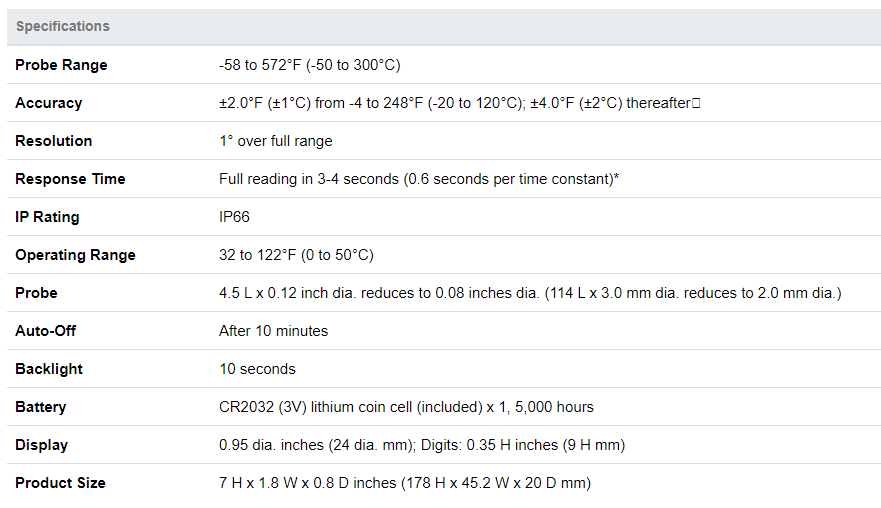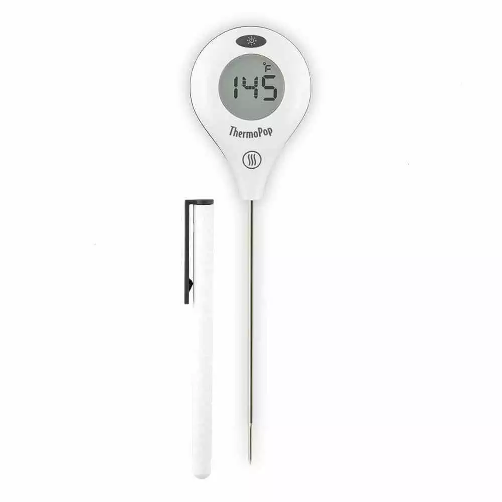 The first rotating display pocket thermometer, the ThermoPop is another innovation from ThermoWorks. A simple button press rotates the display in 90 degree increments. Hold the ThermoPop in either hand or read it when it’s upside down. Any angle is convenient!