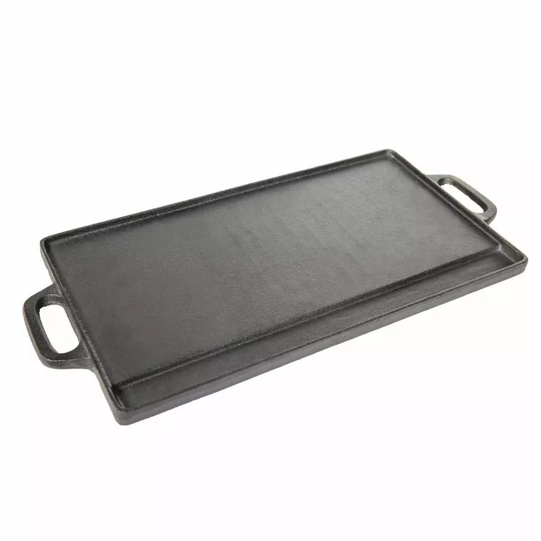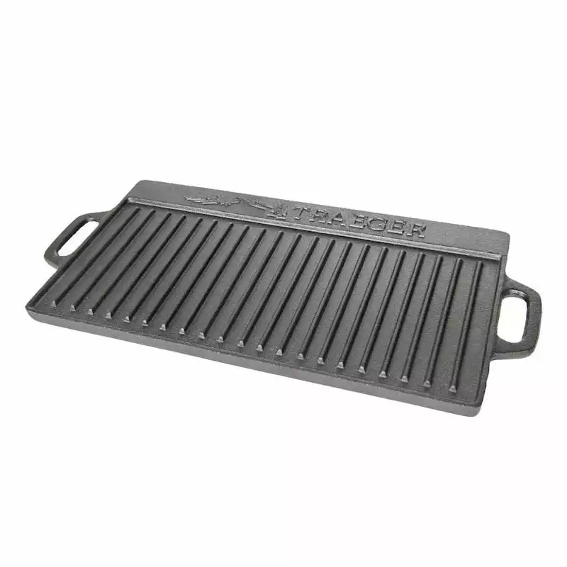 The Traeger Cast Iron Reversible Griddle is the perfect accessory to take your grilling experience to the next level. This double-sided griddle evenly distributes heat for an epic grilling experience. The ribbed side separates the fat content and is great for searing steak, burgers, bacon, or grilling chicken. The smooth side allows you to cook anything from breakfast sausage and eggs to delicious cookies! Pre-seasoned to perfection, the Traeger Cast Iron Reversible Griddle is ready for use right out of the box.