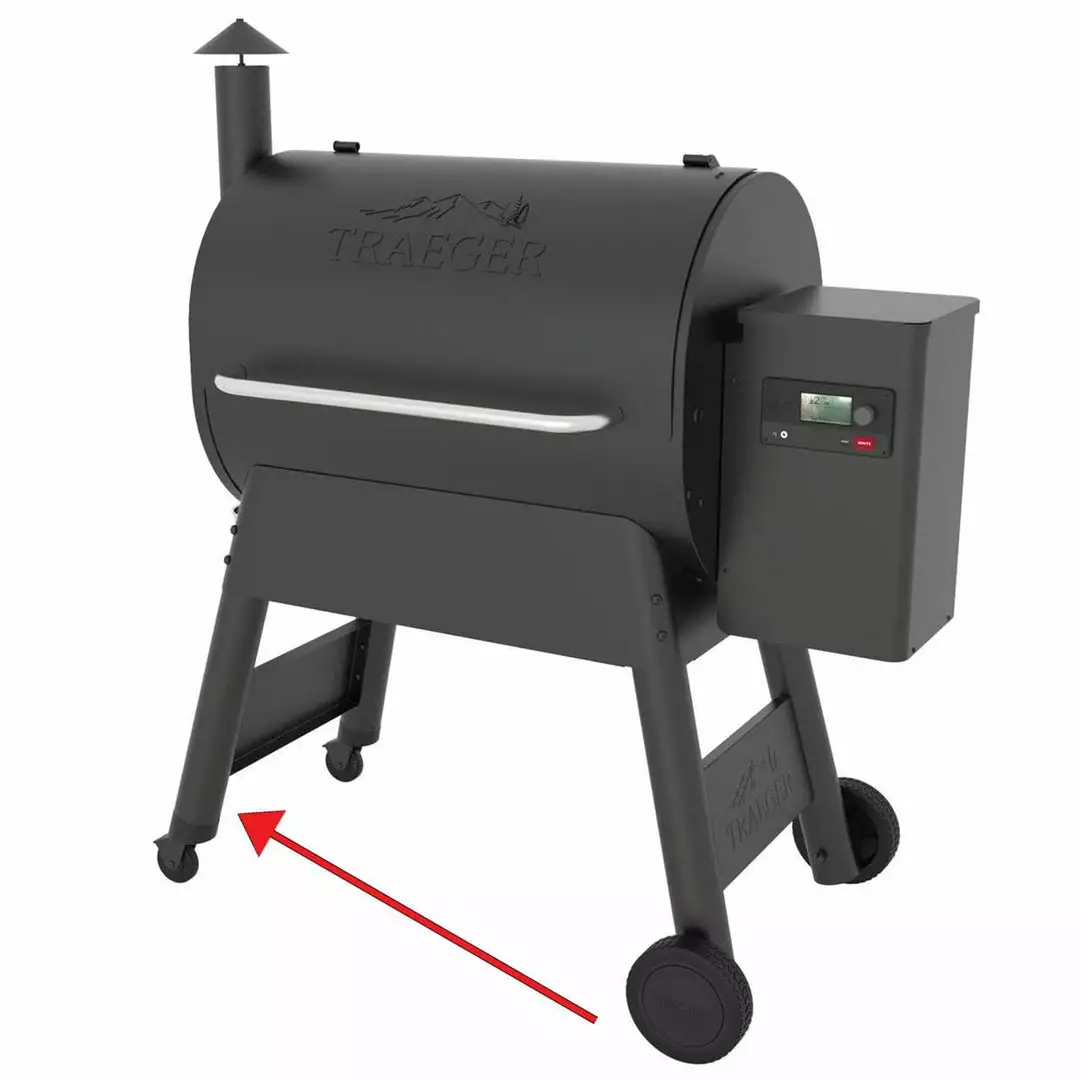 Traeger Front Slanted Leg with Caster Assembly for Ironwood 650/850 and Pro 780 Pellet Grills.