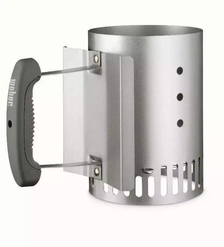 This smaller version of the original Rapidfire Chimney Starter lights coals in under 15 minutes without using lighter fluid.Fits perfectly on Smokey Joe and Jumbo Joe charcoal grills. The Chimney Starter speeds up charcoal ignition with a cone-shaped design that exposes more briquette edges to the flame. The Compact Rapidfire Chimney Starter has a large ergonomic handle for ease of handling while wearing a barbecue mitt.