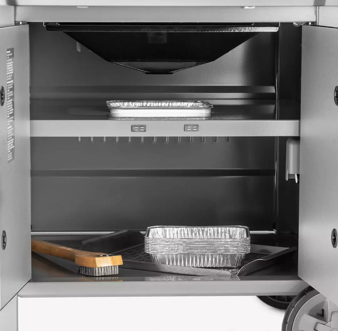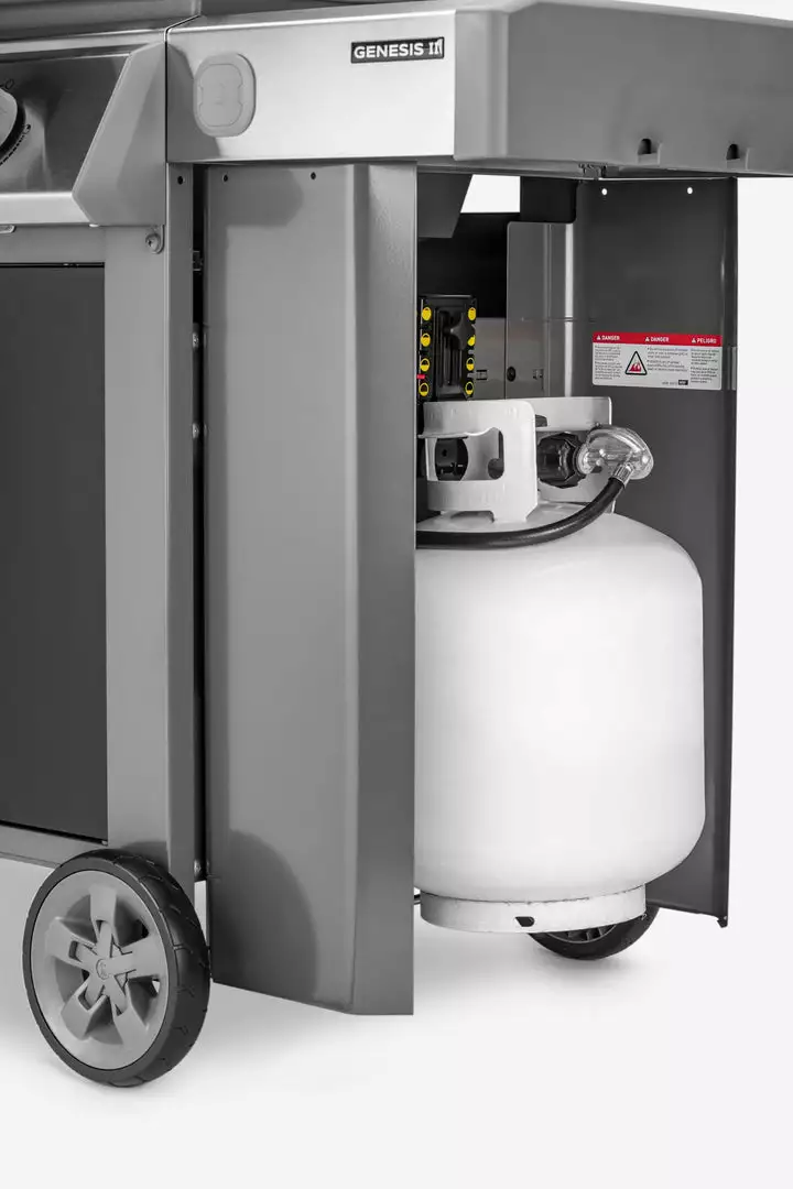This barbecue also features a powder coated, cart frame with doors, a Weber Genesis series classic. Grill Hack: if you run out of space to cook, fold up the Tuck-Away warming rack and add an extra 156 sq. in. to your grill!
