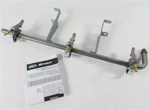 Complete propane (LP) manifold assembly for Weber Spirit “310 and 315″ Series, model years 2013-Current. Manifold measures 19-3/4” long and has two attached mounting brackets. Assembly includes all 3 main burner valves with orifices, a male threaded fitting for the gas supply line, mounting hardware and installation instructions. Genuine Weber Part. IMPORTANT: If this manifold assembly is used to convert fuel type, from Natural Gas (NG) to Propane (LP), all Weber warranties on your grill will be voided.