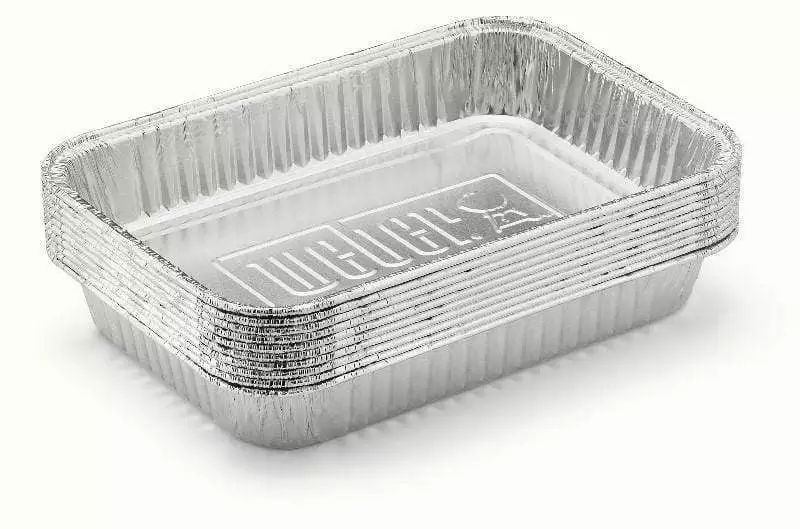 - Weber Small Drip Pans (10-Pack) are convenient to use as liners for the grease catch pan on your grill. They can also be used with aluminum foil to carry food or hold warm foods. They are made of recyclable aluminum.Small 8-1/2-Inch-by-6-inch Aluminum Drip Pans