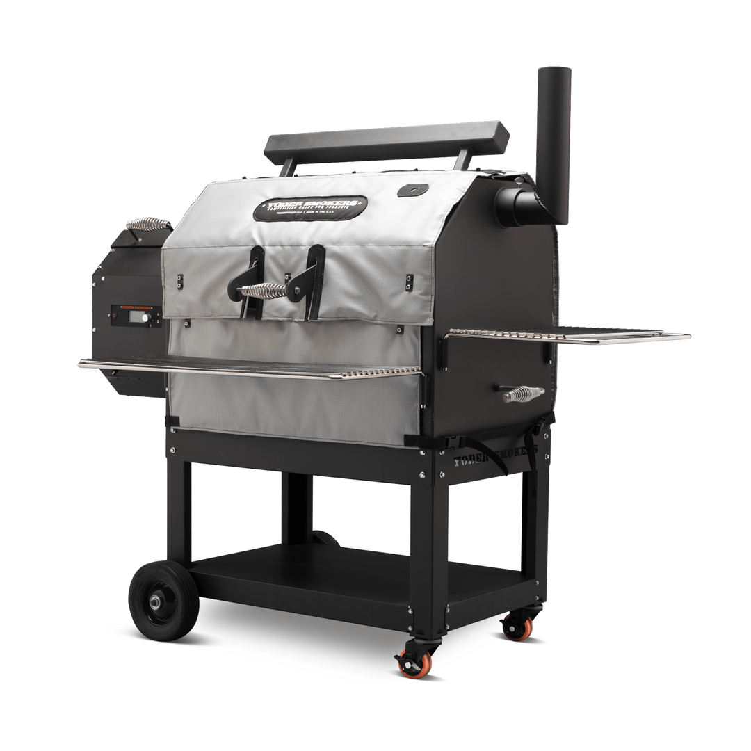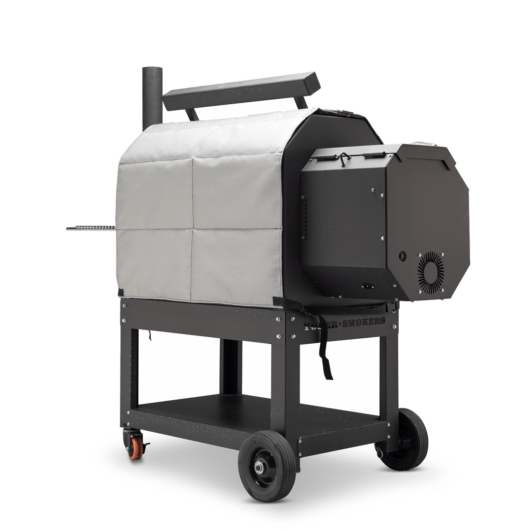 This thermal jacket for the Yoder Smoker YS640 pellet grill helps maintain temperatures during cold winter months. Use less pellets and cook more efficiently. Three pieces fit around cooker body.